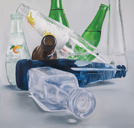 To the artist, the idea of identity is a fluid one that is never fixed, just like water. Here, the water takes on whatever shapes the bottles hold, a representation of one’s search for identity while growing up, attempting to fit into the different moulds and forms as dictated by societal norms. With the labels of the bottles peeled off, the artist is also suggesting that the search for identity is an endless and uncertain one. The bottles are leaning against one another precariously, highlighting the tension and struggle people go through during this search.